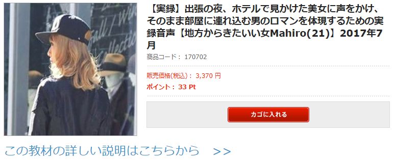コンテンツ:MP3×2(実録×1、解説×1) PDF×2(書き起こし×1、解説付き書き起こし×1)おすすめ度:全体の流れアプローチ(ホテル禁煙フロア)→クロージング(シティホテル)※色の説明■=男性(プレイヤー)■=女性1(ターゲット1)アプローチ部分アプローチの種類共有スペースアプローチ声かけ開始時間4秒~アプローチ会話の流れ声かけ→共有スペース(喫煙)→共有スペース(全体の雰囲気)→共有スペー...